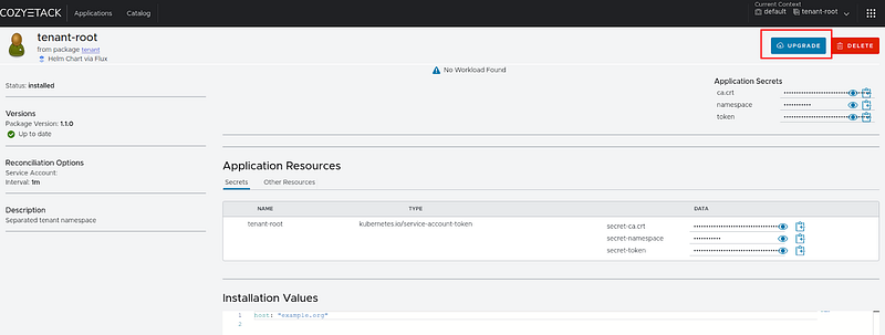 Fig. 31. Proceed to update tenant-root