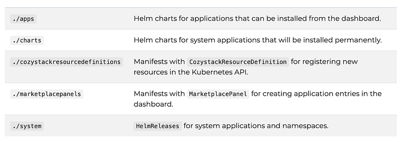 Adding an application requires making an application package, similar to the ones included in Cozystack under packages/apps. Using external packages is enabled by a new CustomResourceDefinition (CRD) called CozystackResourceDefinition and a corresponding controller (reconciler) that watches for these resources.